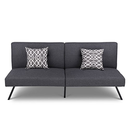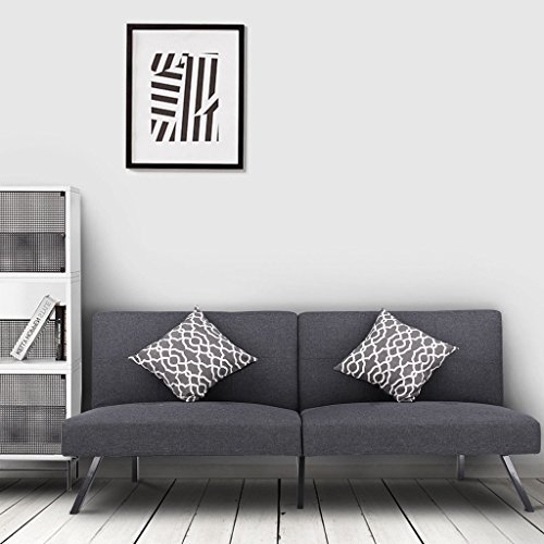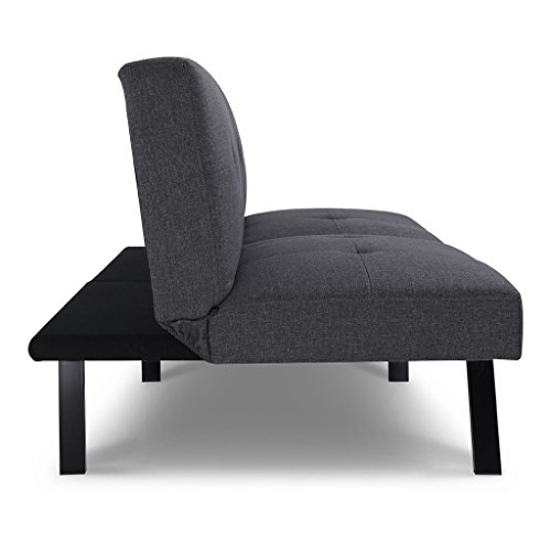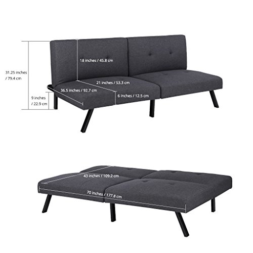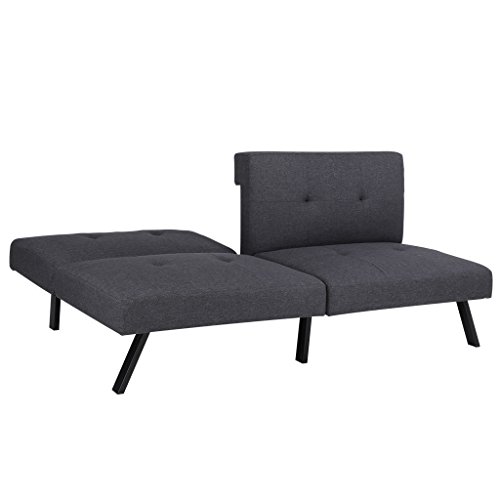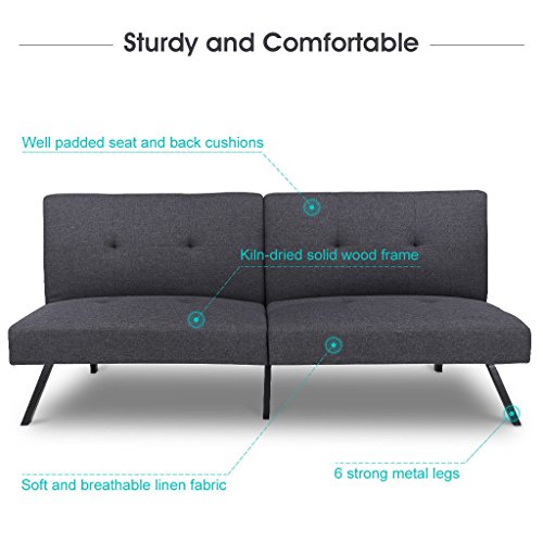 This LANGRIA Convertible Split-back Linen Futon Sofa Bed Couch Recliner Sleeper with 5 Position Recline is much more than an attractive and comfortable modern sofa. It has a split back to accommodate individual preferences. With 5 position recline, it easily converts from sofa to recliner and bed manually, meeting your diverse needs as sitting, lounging and sleeping and perfect for occasional guests or every night use. This sofa bed is also well-made. It's upholstered in a grey linen fabric that blends in with almost any room decor and is supported by a solid wood frame and 6 finished metal legs that make it sturdy and stable for long lasting enjoyment. The high-quality polyester and foam in the back and seat cushions provide ultimate comfort. Minor assembly required.