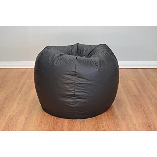 132 Round Bean Bag Black. Durable vinyl fabric and double stitched seams for durability. Dorm-size vinyl bean bag chair is perfect for watching TV, playing video games, reading a book, doing homework or lounging with friends. Durable upholstery grade vinyl brings style to your living room, den, playroom or dorm. Matte finish is easy to wipe clean with damp cloth. Features double locking zippers for safety.Filled with 11 cu. ft. of newly expanded low-density polystyrene eco-friendly beads, made of more than 50% recycled contentMatte finish, black, perfect for any room | Classic round shape bean bag for comfy floor seating