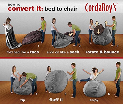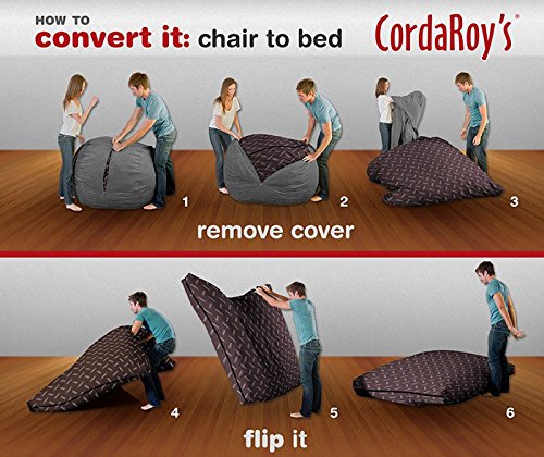 CHAIR CONVERTS TO A STANDARD FULL-SIZE BED. A great night's sleep is in the bag. Comes complete with (1) Full Chair Cover and (1) Full Bed insert. Seats 1 Adult 42" Wide. Sleeps 1 Adults. Patented Full Bed inside (54 x 75 x 8). Changeable, Washable & Dryable Cover. Filled with Premium super soft Shredded Foam. Sturdy cotton/poly bed with safe-lock zippers. Vacuum-packed for easy transport.Chair converts to a full-size bed. A great's night sleep is in the bag!Changeable, Washable & Dryable Cover. Filled with Premium super soft Shredded Foam. Sturdy cotton/poly bed with safe-lock zippers. Vacuum-packed for easy transport.