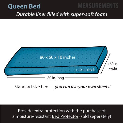 CHAIR CONVERTS TO A STANDARD QUEEN-SIZE BED. A great night's sleep is in the bag. Comes complete with (1) Queen Chair Cover and (1) Queen Bed insert. Seats 1 Adults 48" Wide. Sleeps 2 Adults. Patented Queen Bed inside (60 x 80 x 10 inches). Changeable, Washable & Dryable Cover. Filled with Premium super soft Shredded Foam. Sturdy cotton/poly bed with safe-lock zippers. Vacuum-packed for easy transport.CHAIR CONVERTS TO A STANDARD QUEEN-SIZE BED. A great night's sleep is in the bag.Comes complete with (1) Queen Chair Cover and (1) Queen Bed insert. Seats 1 Adults 48" Wide. Sleeps 2 Adults. Patented Queen Bed inside (60 x 80 x 10 inches)