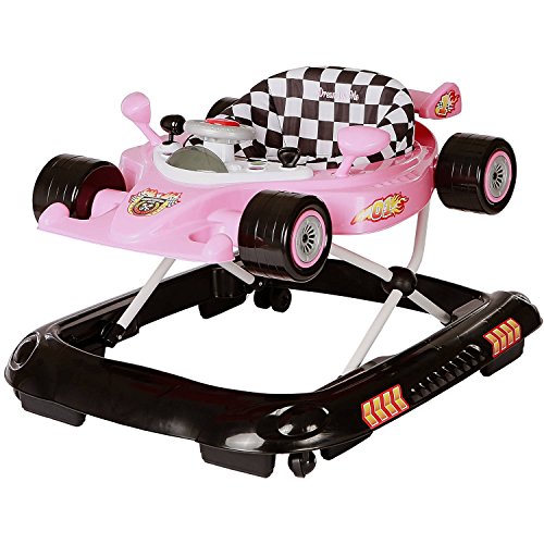 The Dream On Me Victory Lane Activity Walker is ready for your baby to buckle up and have fun while learning to walk! Designed as a race car and featuring realistic car details and loaded with fun gadgets, your baby will have hours of entertainment at their fingertips. The activity tray includes a "start key," steering wheel and shifter that have sound effects, lights and music. The removable, checkered flag fabric seat is washable and tops off the Race Car look of this adorable yet practical and functional walker.Dream On Me Victory Lane Activity Walker: For children up to 25 lbs and 30" tall; Colorful and playful racing design; Sound effects, music and lights aid in stimulating early development; Removable Activity Tray exposes snack tray3 adjustable height position; Shake-reducing stopper wheel with bouncing system to stop the walker when the center of gravity comes to the rear wheels