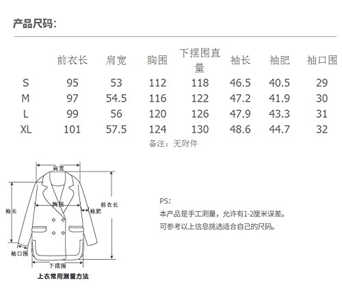 SIZE (cm)- XL -bust:124, Waistline:, Sleeve Length:48.6, shoulder width:57.5, clothing Length :101, : / SIZE (cm)- -bust:, Waistline:, Sleeve Length:, shoulder width:, clothing Length :, :