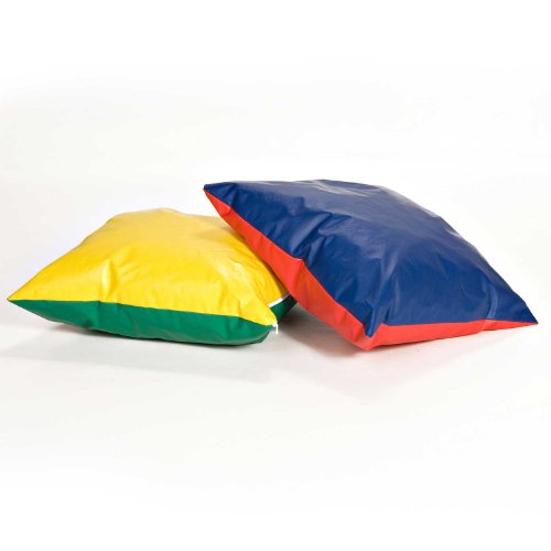 For casual lounging in ultimate comfort, get your kids the Foamnasium Soft-E-Lounge. This set includes two large cushions that link together with Velcro and three smaller pillows. The exterior is soft, colorful vinyl that wipes clean with ease. The interior is filled with shredded polyurethane foam, which offers several advantages over the polystyrene beads that fill traditional bean bags. The foam is more supportive and comfortable than beads, will last longer, and will not leak out of the seams to make a big mess. The bottom of each cushion is covered with breathable fabric to keep them from being airtight. After all, you want to sit on comfortable foam, not a vinyl balloon. But don't worry about introducing air and moisture into the foam—it contains an antimicrobial additive to stop mold growth, even if it gets wet. All the materials are flame-retardant and meet US flammability standards. For a versatile and comfortable way for your kids to take a break from play, try the Foamnasium Soft-E-Lounge. Offering a wide variety of products for daycare, home playrooms, schools, and more, Foamnasium is all about kids having fun. Foamnasium is a high-quality brand of polyurethane foam products for commercial use. After 60 years of development, this product is guaranteed to be soft, durable, colorful, environmentally unique, and fun. If you can't find exactly what you need, Foamnasium can even create a product in virtually any shape you want. Dimensions: 37.5L x 16W x 44.5H in.. Vinyl exterior wipes clean. Filled with shredded polyurethane foam. Bold red/blue/yellow/green vinyl. Includes 2 cushions and 3 pillowsVinyl and foam are flame-retardant. Antimicrobial additive prevents mold growth. Bean bags attach with Velcro.Shredded foam is both soft and durable to serve as a bean bagBreathable fabric at the bottom allows air to leave the bag, so that you're sitting on soft foam, not a vinyl balloon