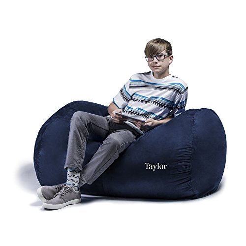 For story time, nap time, play time and any time, kids, teens (and adults too!) love to snuggle into the plush and supportive foam of the Jaxx Sofa Saxx 4 foot bean bag. Fit one, two, or three children on this spacious cloud of comfiness. This miniature Sofa Saxx lounger gives everyone their own space. The ultra soft and durable covers are available in many colors that anyone will love. Each bean bag is filled with shredded furniture grade foam, with a cover that easily zips off for machine washing. Underneath, a protective liner with a childproof zipper keeps the foam contents out of reach and dirt from seeping in.IMPORTANT: use the "GIFT MESSAGE" at Check-out. Click "this is a gift" in shopping cart, and type the personalization you want embroidered IN THE GIFT MESSAGE. 9 characters max. in length. Embroidery will be Times font lettering in White Thread as shown in image.4 ft plush bean bag lounger / sofa for children, teens, or adults. Create a relaxed, informal setting or liven up your home theatre, dorm, game-room, or playroom.