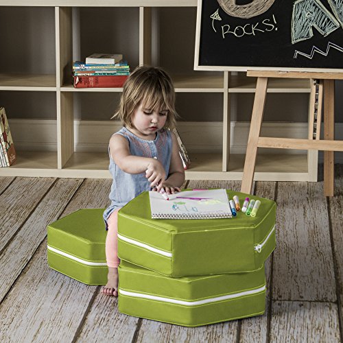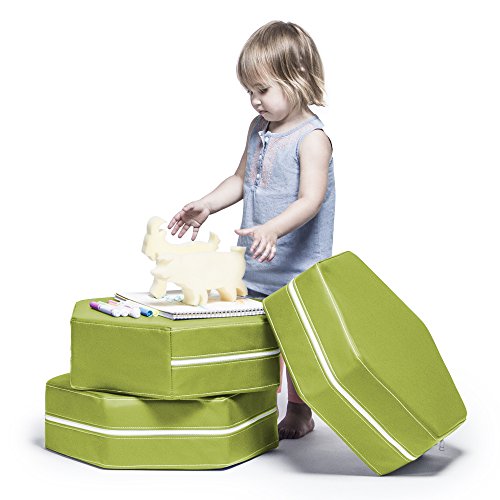 The Soft Play Hexagon Classroom Chairs from Jaxx are stylish, colorful, and durable foam shapes that that are the perfect addition to any classroom or children's area. Let their imagination run wild stacking and arranging the shapes in a variety of fun activities. Individually the hexagonal foam seats are the perfect-sized floor pillow, and in a group they can be used as a table with a seat for drawing or snacks. Each Hexagon is filled with lightweight, durable polyurethane foam - so no hard or sharp edges to worry about. Don't worry about spills either. Each piece comes with a vibrant premium vinyl cover that can be easily removed and spot cleaned. Our premium vinyl meets or exceeds a wide variety of compliant specifications and is perfect for educational environments. The chairs come in a set of three and pair perfectly with other Jaxx Shapes for a more expansive playscape. These shapes make learning exciting, plus they create an interactive environment that nurtures imagination and creativity.Set of three sturdy multi-purpose foam hexagons that can be used as a floor cushions, tables, or play surfaces for kidsEach circle is filled with a safe, supportive, and highly durable polyurethane foam and features premium classroom compliant vinyl covers that are removable and wipe clean easily
