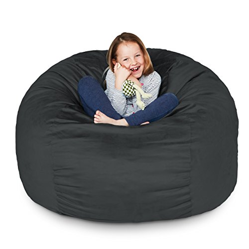 Lumaland Luxury 3-Foot Bean Bag Chair with Microsuede Cover Black, Machine Washable Big Size Sofa and Giant Lounger Furniture for Kids, Teens and Adults