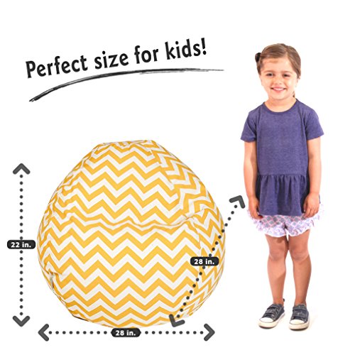 Majestic Home Goods Classic Bean Bag Chair - Chevron Giant Classic Bean Bags for Small Adults and Kids (28 x 28 x 22 Inches) (Yellow)