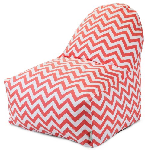 This Majestic Home Goods Coral Chevron Kick-It Chair will add style and functionality to your living room, dorm room or game room. This Beanbag Chair has the design of modern furniture, while still giving the comfort of a classic bean bag. Woven from Cotton, these loungers are durable yet comfortable. The beanbags are eco-friendly and feature a removable zippered slipcovers. Spot clean with mild detergent and hang dry. Do not wash insert.Zippered Slipcover300/600 Waterproof Denier Base