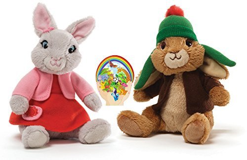 Set includes bonus Animals sticker. Use this vinyl sticker anywhere - indoor or out. Stick it to metal, wall, glass, wood - any flat surface. Will not leave residue. High Quality.Benjamin Bunny beanbag complete with knit cap and green jacket and Lily Bobtail plush complete with pink dress, sweater, headband, and just in case pocket