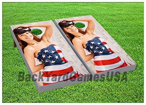 Patriotic Us Flag Sexy Girl Cornhole Boards Beanbag Toss Game W Bags