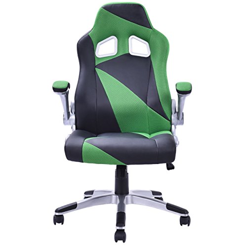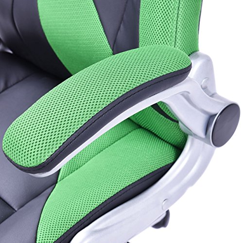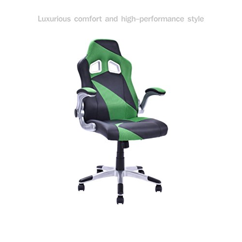 Racing Style High Back Executive Office Desk Gaming Chair Comfortable Bucket Seat Swivel Desk Task PU Leather Upholstery Adjustable Armrest Posture Back Support #1560grn