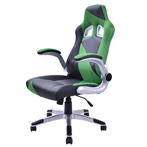 Racing Style High Back Executive Office Desk Gaming Chair Comfortable Bucket Seat Swivel Desk Task PU Leather Upholstery Adjustable Armrest Posture Back Support.Racing style gaming chair, comfort soft PU leather upholstery backs support, adjustable seat height makes this chair ideal for those who work at desks for long period