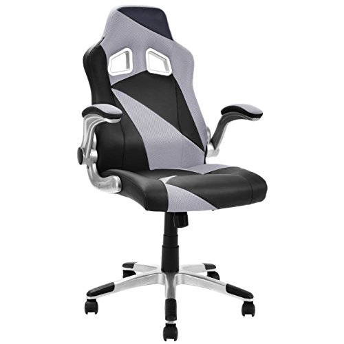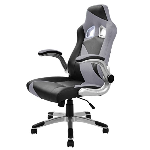 Racing Style High Back Executive Office Desk Gaming Chair Comfortable Bucket Seat Swivel Desk Task PU Leather Upholstery Adjustable Armrest Posture Back Support.Racing style gaming chair, comfort soft PU leather upholstery backs support, adjustable seat height makes this chair ideal for those who work at desks for long period