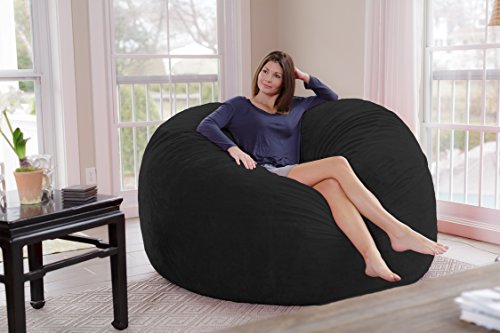 Chill Sack Bean Bag Chair: Giant 6' Memory Foam Furniture Bean Bag - Big Sofa with Soft Micro Fiber Cover - Black Furry
