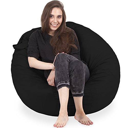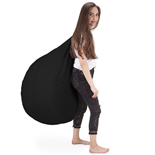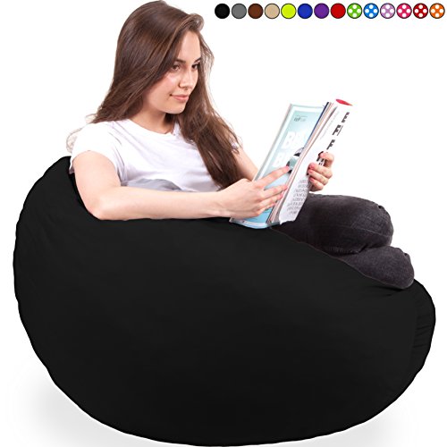 King-Sized Bean Bag Chair in Limo Black - Machine Washable Big Soft Comfort Cover with Memory Foam Filler - Cozy Lounger & Bed - Kids & Teens Love This Huge Sack - Indoor Furniture by Panda Sleep