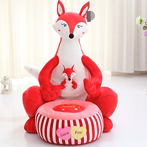 MAXYOYO Soft Velvet Mom and Me Cartoon Animal Washable Kid Bean Bag Sofa Chair Plush,Mom and Me Animal Plush Toy Sofa for Boys and Girls (red fox)