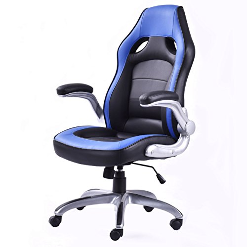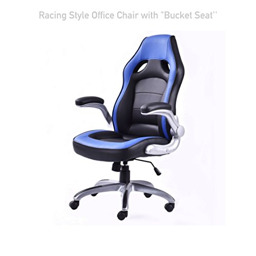 Modern Race Car Style high Back Computer Gaming Chairs Thickly Padded Cushion Comfortable Bucket Seat Swivel Desk Task Ergonomic Design Posture Support Home.Racing style gaming chair, comfort soft PU leather upholstery backs support, adjustable seat height makes this chair ideal for those who work at desks for long period