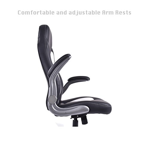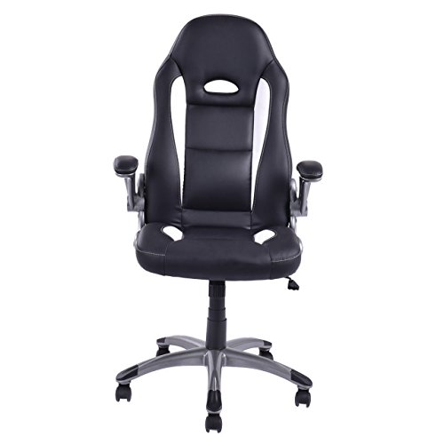 Modern Racing Style High Back Executive Office Desk Gaming Chair Comfortable Bucket Seat Swivel Desk Task PU Leather Upholstery Adjustable Arm Rests Posture Support.Racing style gaming chair, comfort soft PU leather upholstery backs support, adjustable seat height makes this chair ideal for those who work at desks for long period