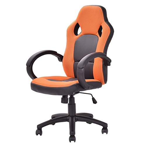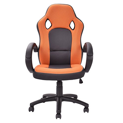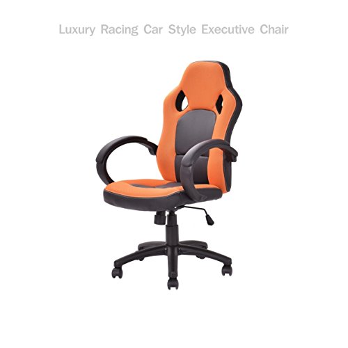 Modern Racing Style High Back Executive Office Desk Gaming Chair Comfortable Bucket Seat Swivel Desk Task PU Leather Upholstery Adjustable Height Posture Support.Racing style gaming chair, comfort soft PU leather upholstery backs support, adjustable seat height makes this chair ideal for those who work at desks for long period