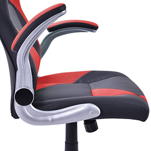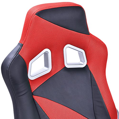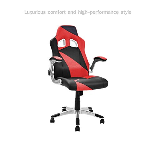 Racing Style High Back Executive Office Desk Gaming Chair Comfortable Bucket Seat Swivel Desk Task PU Leather Upholstery Adjustable Armrest Posture Back Support.Racing style gaming chair, comfort soft PU leather upholstery backs support, adjustable seat height makes this chair ideal for those who work at desks for long period