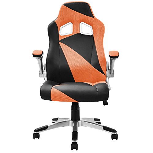 Racing Style High Back Executive Office Desk Gaming Chair Comfortable Bucket Seat Swivel Desk Task PU Leather Upholstery Adjustable Armrest Posture Back Support.Racing style gaming chair, comfort soft PU leather upholstery backs support, adjustable seat height makes this chair ideal for those who work at desks for long period