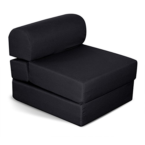 Children's Studio Chair Sleeper Jr. Twin. Doesn’t your child need a functional furniture piece that doesn’t take up a lot of space? Our Child Studio Chair Sleepers are the ideal solution. Use it as a chair, or simply unfold it into a super plush mattress. Kids love to use it for taking naps, reading a book, overnight camping or TV time. With so many uses and expressive colors to choose from, it’s an essential furniture piece for children. Item is lightweight for easy handling. Store away easily. Recommended Seating 1 to 10 years old. Seating Dimensions: 24"W x 28 1/2"D x 23 1/2"H. Sleeping Dimensions: 64"L x 24"W x 12"H. Finish: Black. Material: Poly-Cotton and Polyurethane Foam. Item is made in USA.Good for overnight campingSleeping Dimensions: 64"L x 24"W x 12"H.