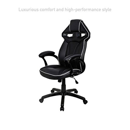 Executive Racing Car Style High Back Computer Gaming Chairs Comfortable Bucket Seat Swivel Desk Task Ergonomic Seat Back design Posture Support Home Office Furniture.Racing style gaming chair, comfort soft PU leather upholstery backs support, adjustable seat height makes this chair ideal for those who work at desks for long period