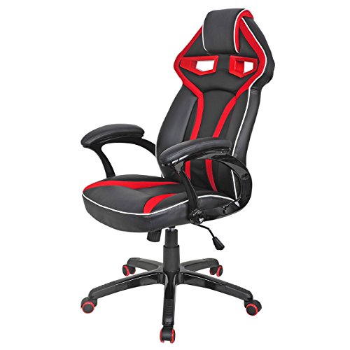 Executive Racing Car Style High Back Computer Gaming Chairs Comfortable Bucket Seat Swivel Desk Task Ergonomic Seat Back Design Posture Support Home Office Furniture.Racing style gaming chair, comfort soft PU leather upholstery backs support, adjustable seat height makes this chair ideal for those who work at desks for long period
