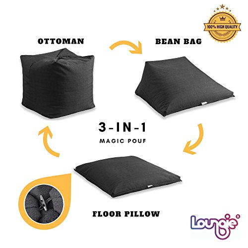 It is a great fit in kids rooms, dorm rooms, basements, guest room, patio, family room, studio, bedrooms and more. Coverable bean bag can serve you as a chair, ottoman or floor pillow. Can easy unfold into a flat position and be stored under the bed when not in use. Magic Pouf bean bag is a great combination of style and functionality. There is no assembly required.