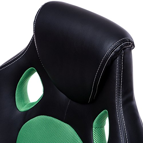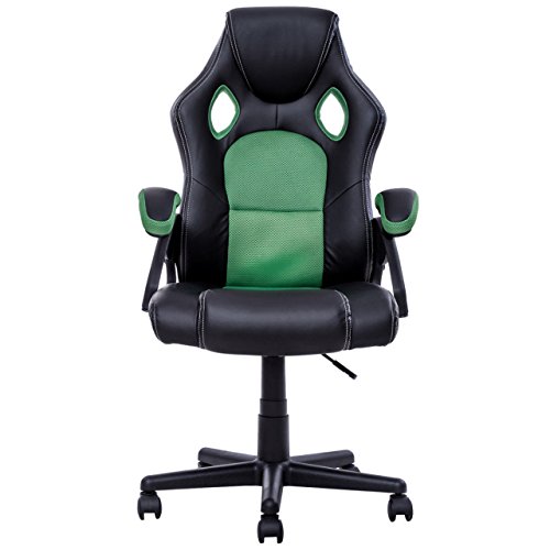Racing Style High Back Executive Office Desk Gaming Chair Comfortable Bucket Seat Swivel Desk Task Adjustable Height PU Leather Upholstery Posture Support.Modern racing style gaming chair, comfort soft PU leather upholstery backs support, adjustable seat height makes this chair ideal for those who work at desks for long period