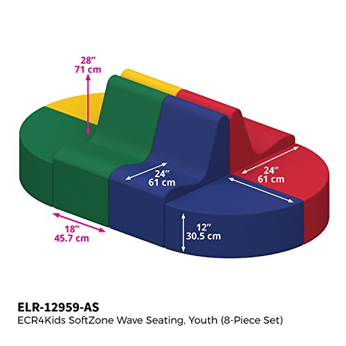 ECR4Kids SoftZone Youth Wave Seating - Play Foam Furniture for Kids - Assorted (8-Piece Set)