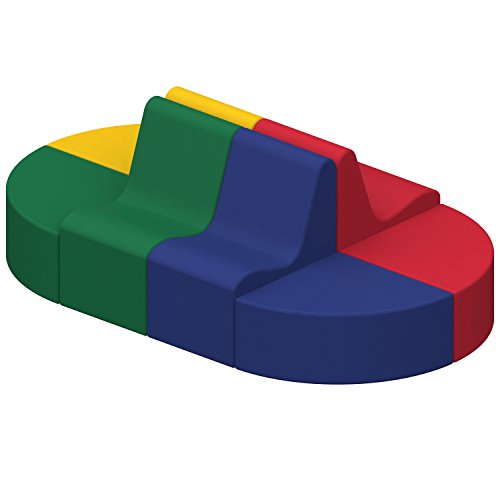 Add a burst of colorful comfort to any space with soft zone WAVE seating! this 8-piece set includes 4 kids' chairs and 4 quarter circle tables. Use this as a standalone set, or pair it with more WAVE seating to create a customized Lounge or reading nook. With fluid contours and a dense foam core, this Seat makes a comfortable and stylish addition to any space. Captivating colors and sleek curves make these a kids' favorite in bedrooms, playrooms, waiting rooms, libraries and more. The soft leather cover material is durable and easy to maintain — just wipe clean with a mild soap-and-water solution. A non-slip bottom helps keep the wedge safely in place during use. Available in a wide range of colors and in three different sizes: toddler, pre-school and Youth. Toddler size is intended for use by children ages 9 months - 3 years old; pre-school is intended for ages 3 years - 6 years; Youth is intended for ages 6 years and older. Soft zone WAVE seating is GREENGUARD [gold] certified for meeting or exceeding standards for low emissions into indoor air during product usage, and complies with Cal 117 fire safety regulations. With a concentration on the Pre K-12 sector, ECR4Kids offers a wide range of products including classroom tables and chairs, preschool rest time solutions, hardwood storage cases, blocks and manipulative, mobile organizers and a variety of indoor and outdoor play structures.Soft sitting area - set of 4 kids' chairs & 4 quarter circle tables made with high-density foam and sleek curves