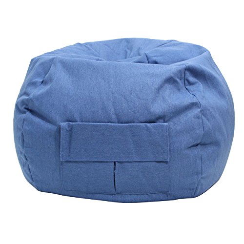 The XXL Blue Jean Denim Bean Bag with "Cargo Pocket" is Sturdy, Double Stitched, and has a Child Safe Zipper. 140" Circumference (L41" x W41" x H24"). Comfortably Fits all Ages. The Convenient Pocket is Perfect for your Cell Phone, Remote Control, Books, Magazines, etc. This Durable Bean Bag is Made in USA and has Easy Spot Clean Maintenance. Filled with Virgin Expanded Polystyrene Beans.Made in usaDouble stitched