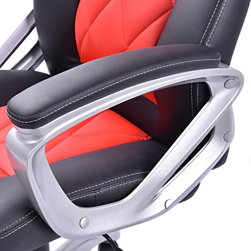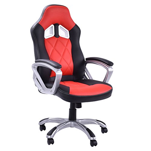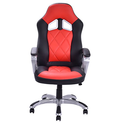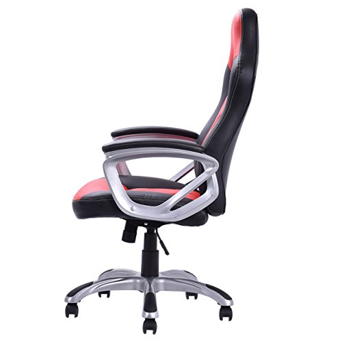 Modern Racing Style High Back Gaming Chair Comfortable Bucket Seat Swivel Desk Task Smooth Adjustable Height PU Leather Upholstery Heavily Padded Seat Posture Support 360° Rotatable Wheels Home Office Furniture.Ergonomic gaming chair comfort soft PU leather upholstery backs support, adjustable seat height makes this chair ideal for those who work at desks for long period